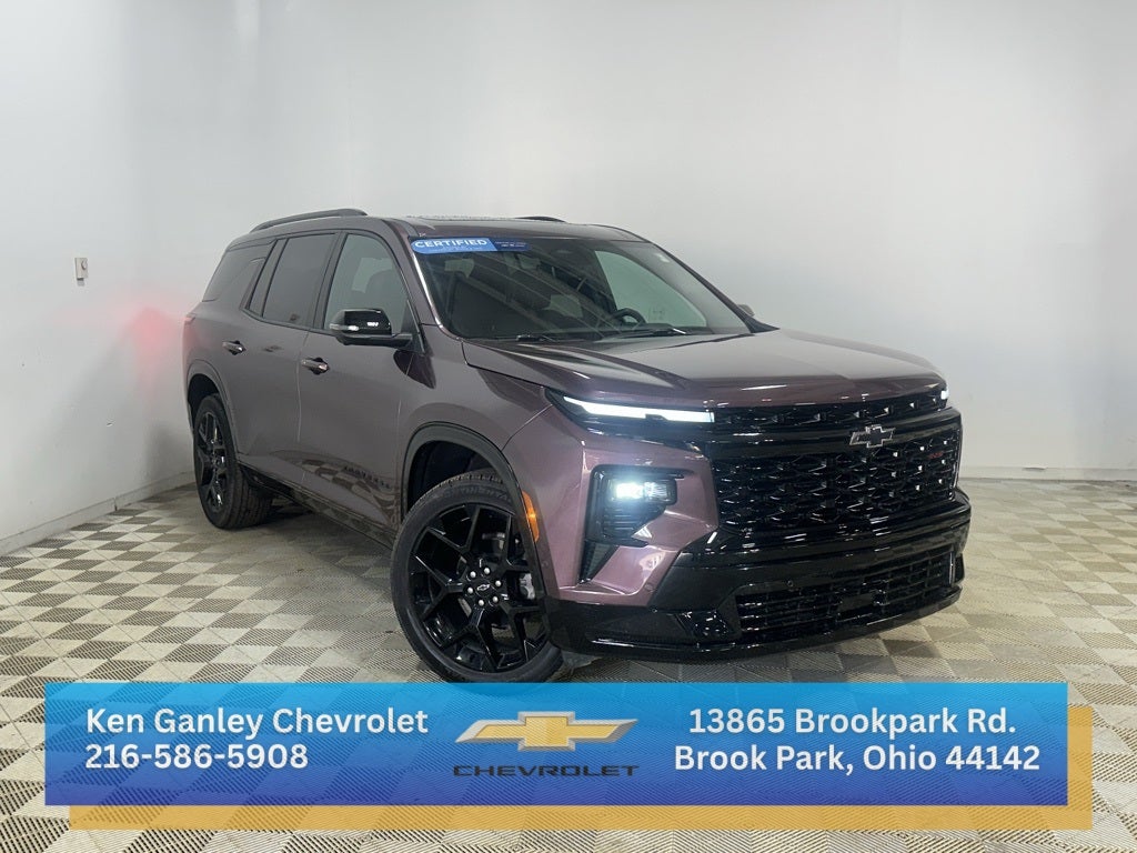 Certified. Stardust Metallic 2024 Chevrolet Traverse RS AWD 8-Speed Automatic 2.5L DOHC Third row Seats, Heated Leather Seats, **Accident Free CarFax History**, 6-Way Power Front Passenger Seat Adjuster, 8-Way Power Driver Seat Adjuster, Bose Premium 10-Speaker Audio System Feature, Exterior Parking Camera Rear, Navigation System, Power Liftgate, Power moonroof, Radio: 17.7 Diagonal Display, SiriusXM w/360L.